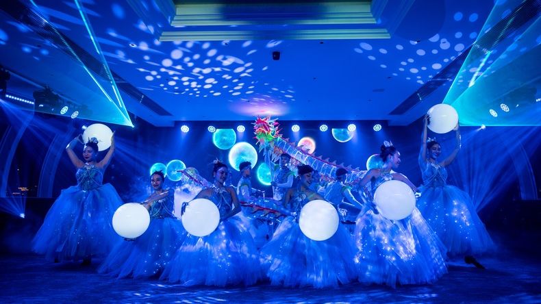 Tận hưởng chương trình nghệ thuật đa phương tiện đầu tiên được dàn dựng hoàn toàn trên một du thuyền, mang tên “Vũ điệu biển khơi” tái hiện nguồn gốc hình thành Vịnh Hạ Long, truyền thuyết con Rồng cháu Tiên, khắc họa hình ảnh đời sống chân thực của người dân làng