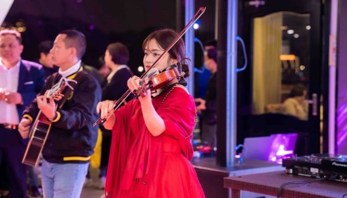 18:30 – 19:15 Quý khách nhâm nhi những món ăn nhẹ trong bữa tiệc canapé nhẹ nhàng và hòa mình trong tiếng nhạc violon, guitar êm đềm và lãng mạn.