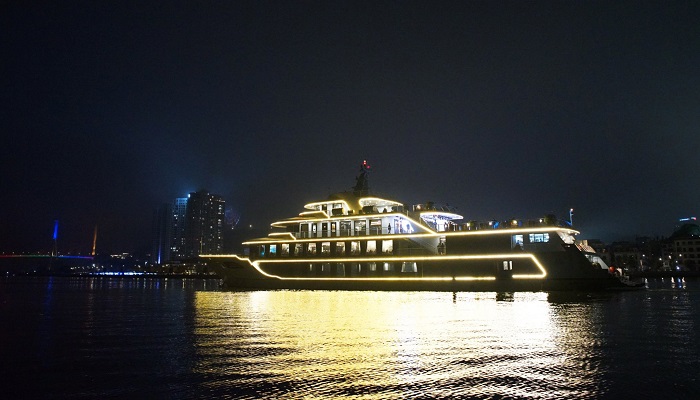 18:00 – 18:15 Quý khách sẽ có thời gian ngắm nhìn khung cảnh lung linh tuyệt đẹp của thành phố Hạ Long về đêm trong khi du thuyền Sea Octopus di chuyển trong vịnh, đưa quý khách đi qua những địa điểm nổi tiếng như cầu Bãi Cháy, Vòng quay mặt trời, núi Bài Thơ, Quảng Trường, bảo tàng Quảng Ninh, cung Cá Heo.