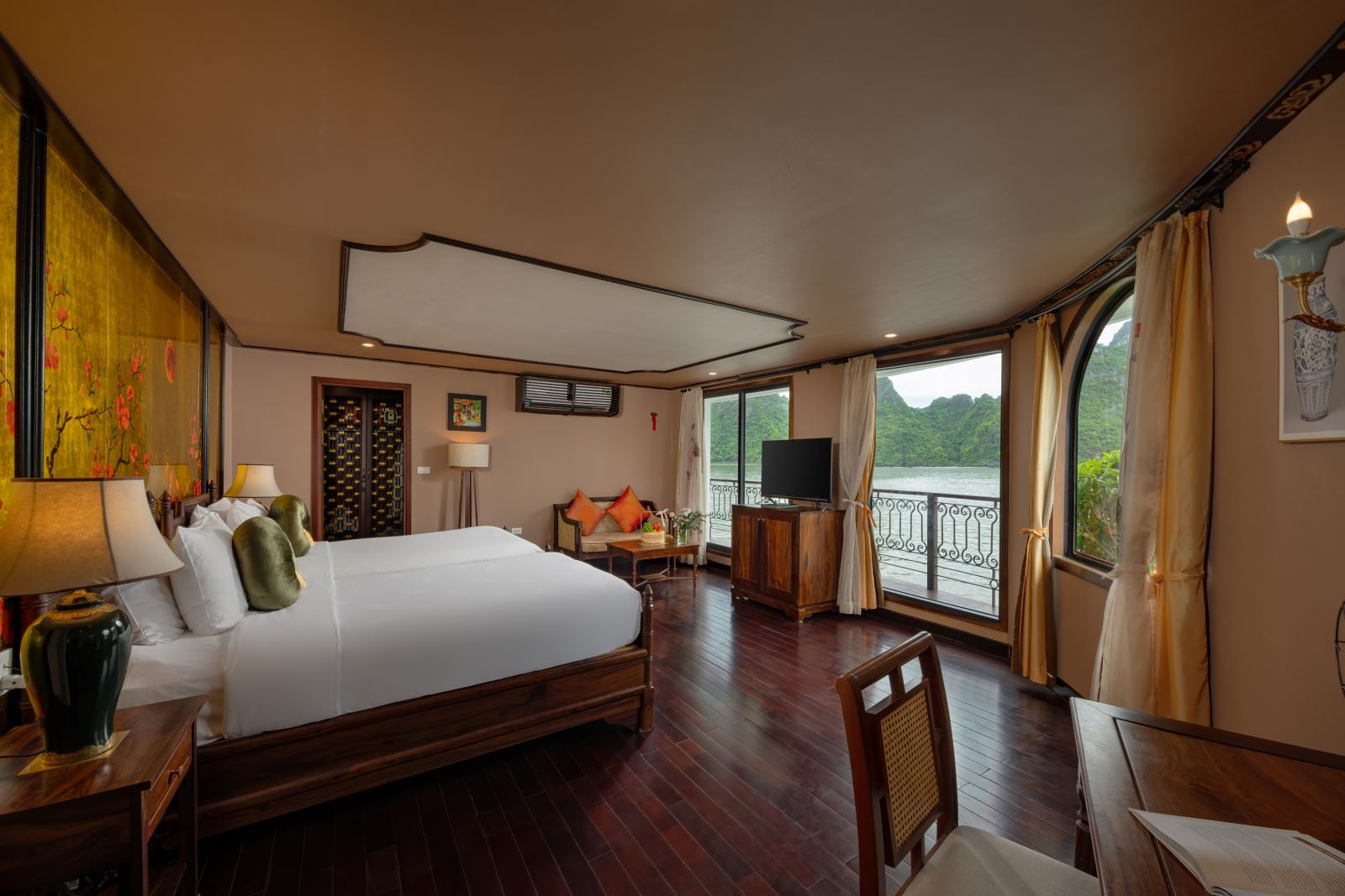 - Cabin sang trọng, rộng rãi với góc nhìn tuyệt đẹp trên vịnh